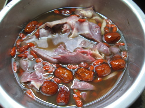 月子餐料理: 紅棗枸杞藥酒燉豬心