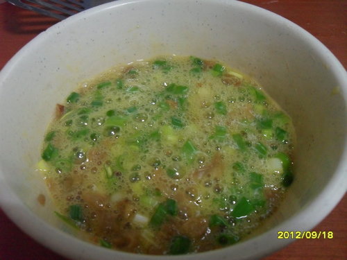 3. 取適量炒好的菜脯絲,將其切成丁與蔥花和蛋及調味料一起拌均勻