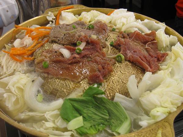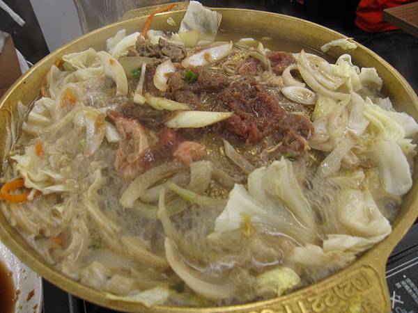 銅盤烤肉會附一壺高湯在桌旁 太乾時自行增加高湯