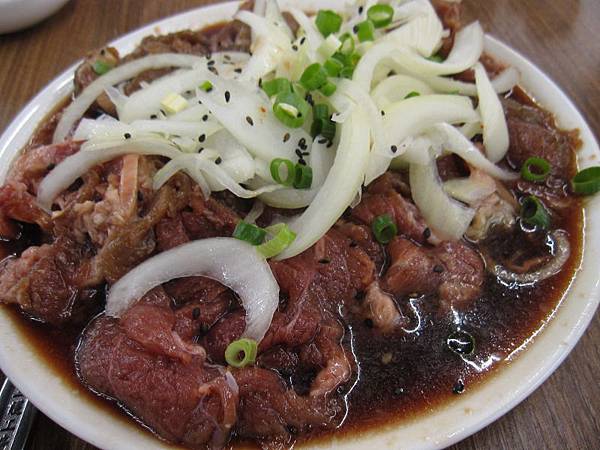 牛肉片的份量算多喔 至少15片以上(大小片) 上面鋪洋蔥絲 肉有醃過味道不錯