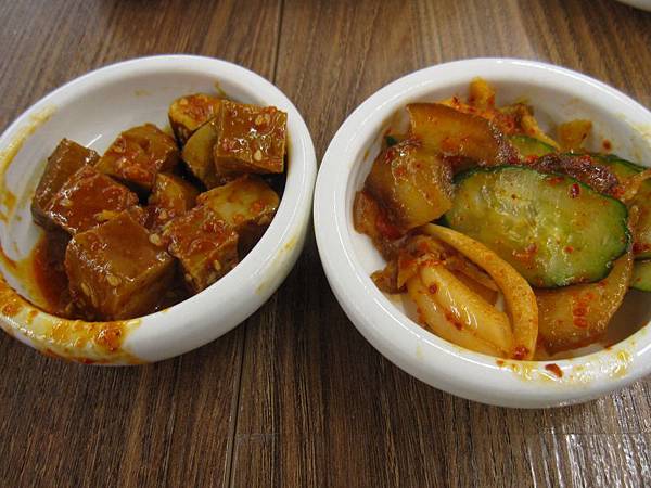 來韓國料理當然要吃韓式泡菜才對味(其實她們老早就盛盤放在後方的枱面上)