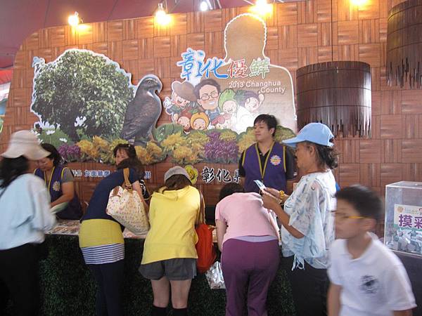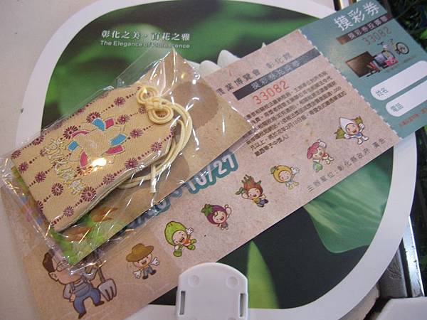 入口處--> 記得拿取扇子 --> 逛完彰化優鮮館後可領取摸彩券1張及每日限量的福袋吊飾ㄛ