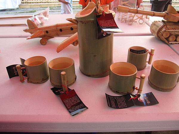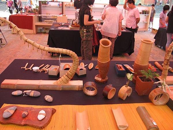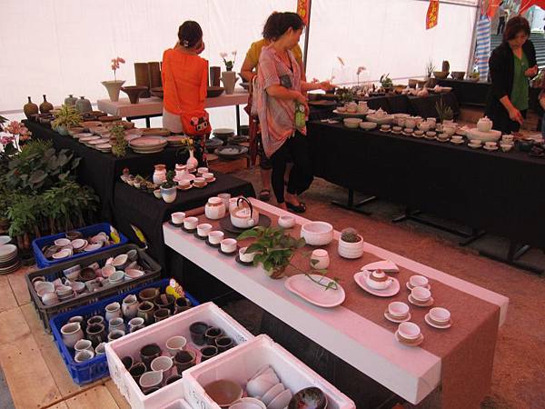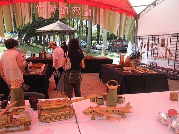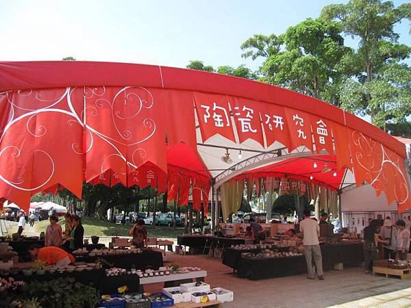 在工藝館旁紅色的帳篷裡有陶瓷研究會和竹藝研究會