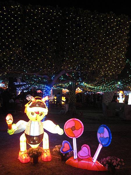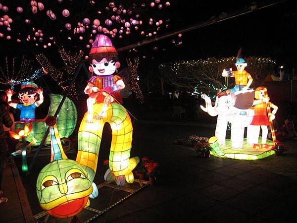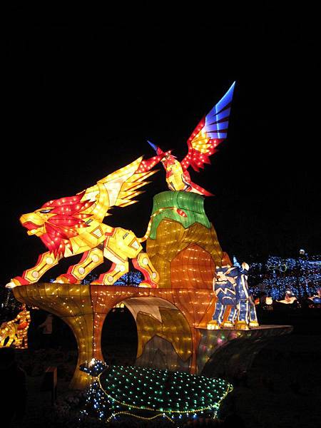 以動漫造型塑造動漫版金獅王.組成巨型入口主題燈,結合各式動物與卡通版人物分區主題單元,配合燈區樹木林立特色佈展,呈現出活潑夢幻般森林意境