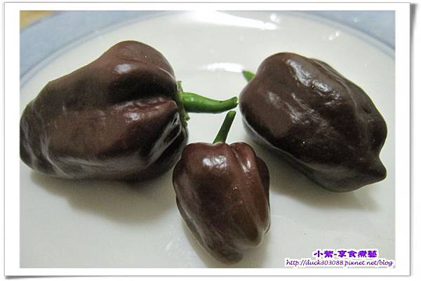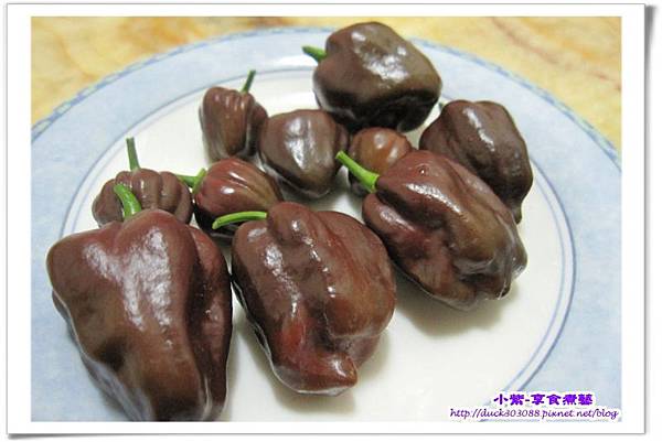 終於盼到它們成熟囉 巧克力顏色的辣椒~很特別吧?
