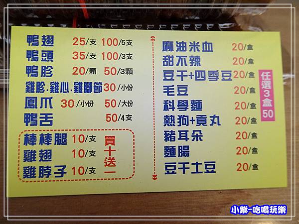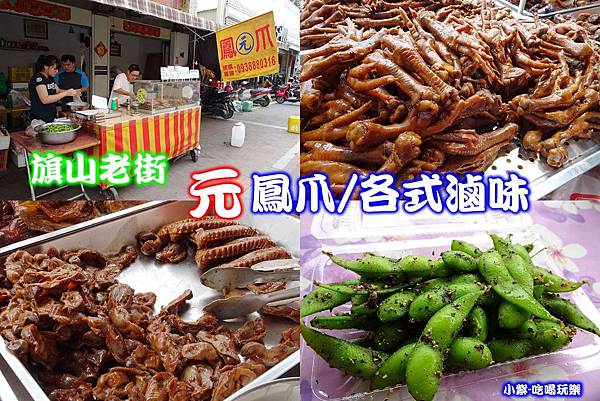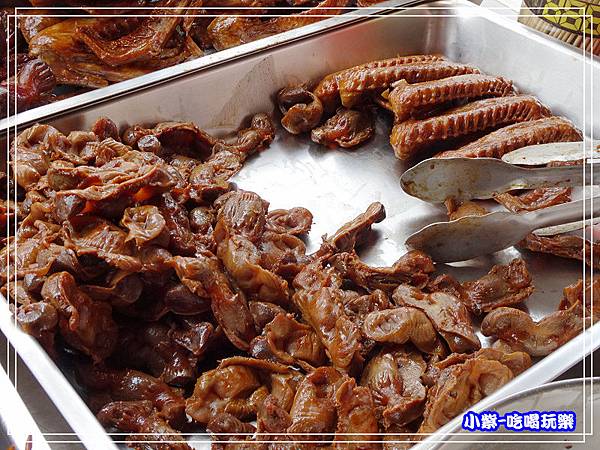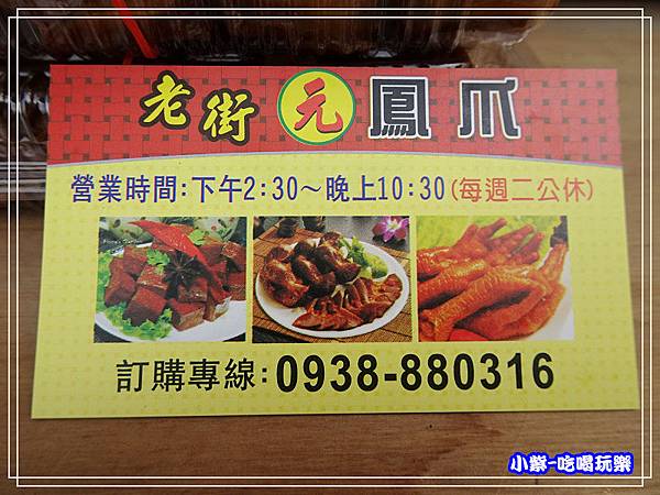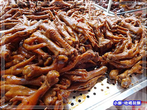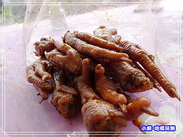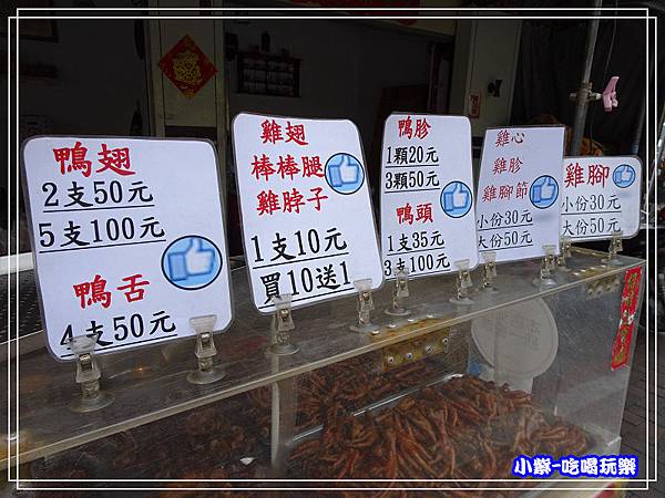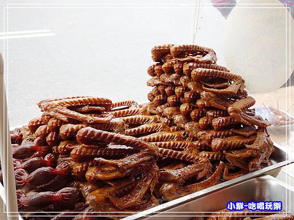 (滷味真的好吃。4/4露營回程/回家前又專程來老街買回家享食)But, 這次是碰碰運氣看擺攤好了沒?結果...是剛剛到--只有3種事先滷好的鳳爪、鴨翅和鴨肫可以選購)