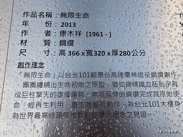 這是台北101觀景台高速電梯退役下來的鋼纜,圈圈纏繞出生命初始的原型,猶如鋼鐵血胚胎孕育成巨柱擎天的雄偉建築