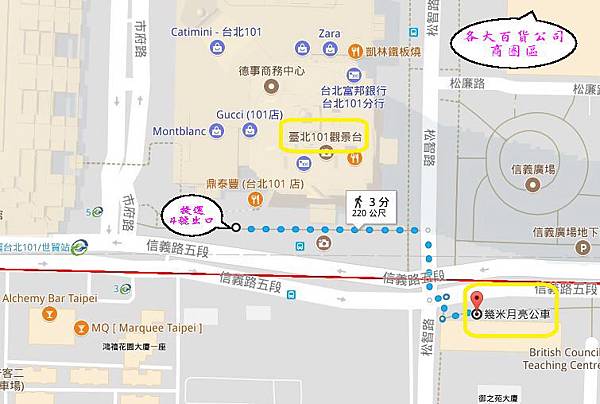 捷運台北101/世貿站-4號出口-->往信義路五段/松智路路口走(約210m-3分鐘)