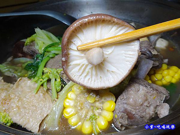 菇腳很有咬勁,我是一開始加熱時就先將菇腳放進湯內煨煮、等湯滾了再下楓香香菇煮食。假如您也喜歡吃有機椴木香菇?可以(點我查看遊記與食記)