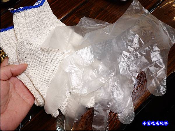 先戴棉手套再將塑膠手套~套在外層即可趁熱開扒