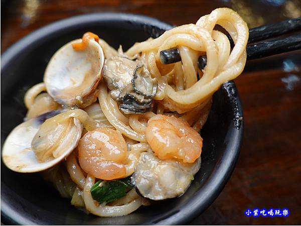 麵條巴附著蝦仁、蛤蜊、蚵仔"鮮"味