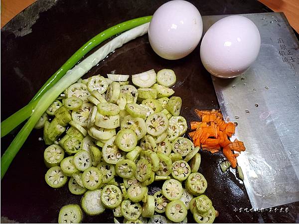 註:最近犯懶!我發現另外一個不用油炒秋葵的另一種讓秋葵變熟的方式;就是您可以先將秋葵洗淨整條放到電鍋內蒸熟再切片或是先水煮秋葵,將秋葵煮熟後再切片打蛋液