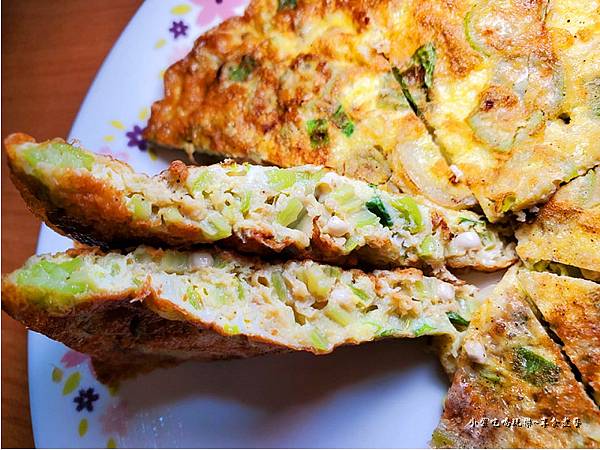 今天是隨興煎~ 煎的過程(待)煎蛋底部凝固後(翻面時)就順便將(秋葵蛋)用鍋鏟切成一片片易入口size。若您想宴客or追求美美擺盤~則可以先『煎成圓形』再切片擺盤喔!
