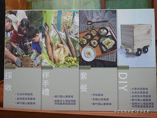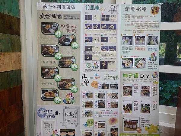 遊客中心內立牌展示了『基隆休閒農業區』裡~超多特色農場所提供的各式DIY體驗簡介