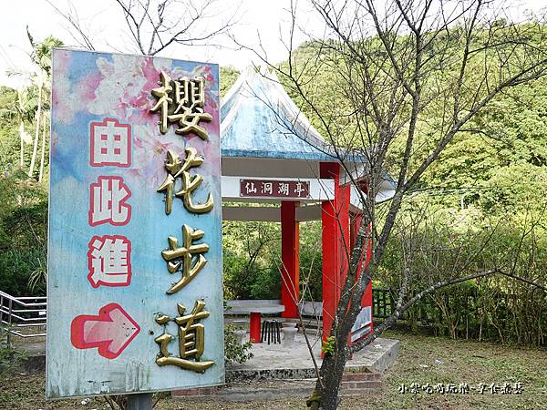 當您開車進入『瑪陵休閒農業園區』看到(下圖)仙洞湖亭涼亭代表您已抵達『遊客中心下方』瑪陵坑溪櫻花步道