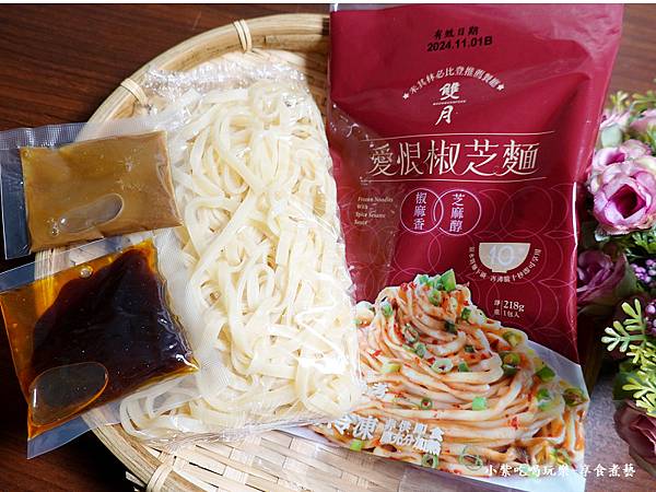 招牌麵食【雙月愛恨椒芝麵】加熱即食冷凍包(水滾煮10秒)拌勻立即輕鬆開吃!全家超商與全家行動購都買的到喔!