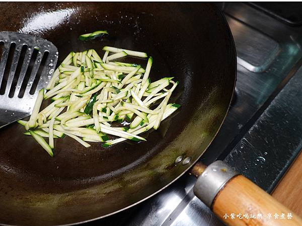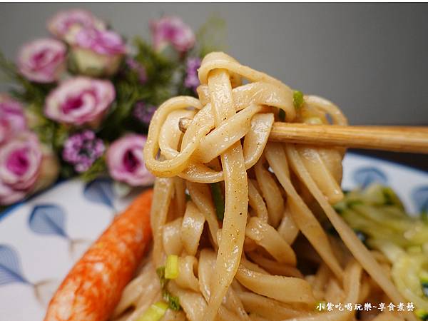 麵條Q彈吃在嘴裡帶著微微椒麻醬(油香)交織著濃郁芝麻醬堅果香氣、拌小紫『炒微軟~櫛瓜吃』多了蔬菜甜
