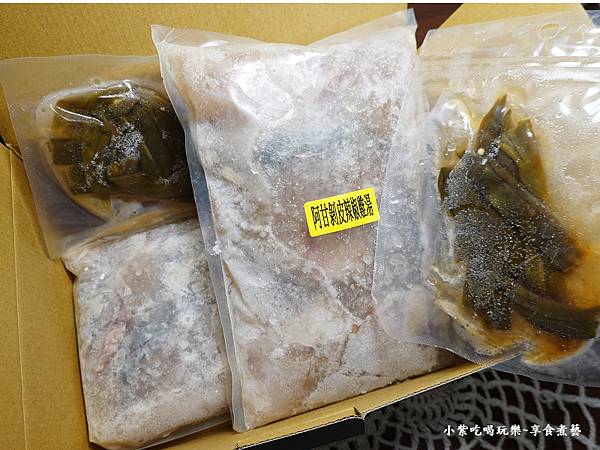 盒內有2大包冷凍(含肉)阿甘剝皮辣椒雞湯包