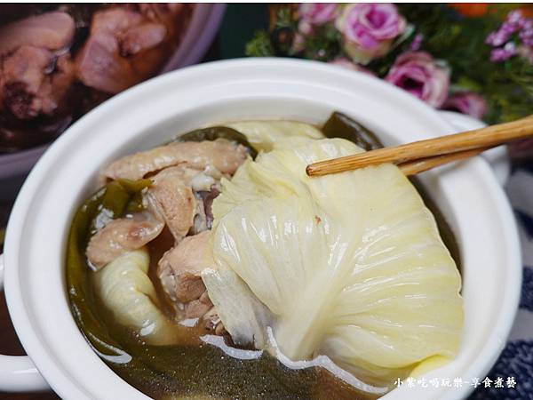 我喜歡放很多高麗菜入雞湯一起煨煮加熱