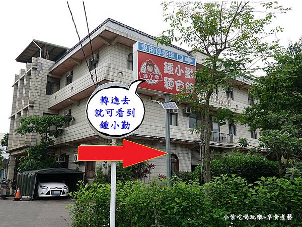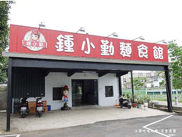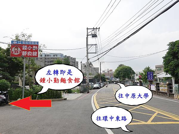 (下圖) 從中原大學(新中北路)往環中東路方向、看到的『鍾小勤麵食館』路口招牌