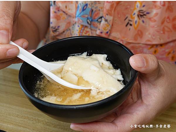 小叮嚀: 自挖豆花方式是(平挖)不是挖厚厚一大塊!平挖豆花才能讓豆花快速吸附糖水、吃的時候除了帶著綿密豆香還會有甜甜手熬糖水香氣