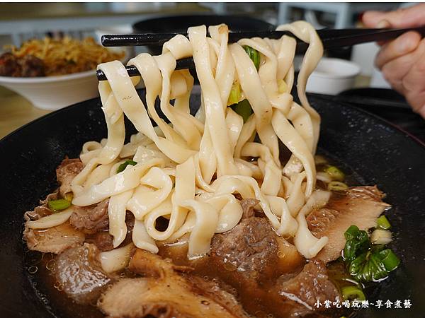 寛麵牛肉麵麵條現吃略帶嚼勁! 久泡不易軟爛!