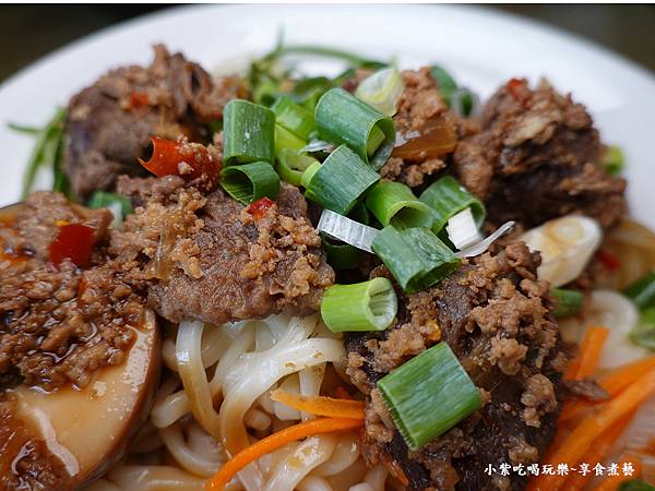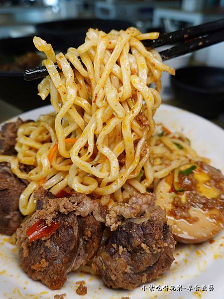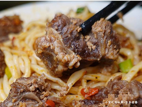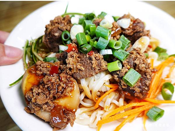 每一塊乾拌麵滷牛肉都很大塊又厚實! 而且仔細端倪~其實店家很有創意! 出餐時在每一塊滷牛肉上方淋了看起來像紹子醬的『滷肉燥』