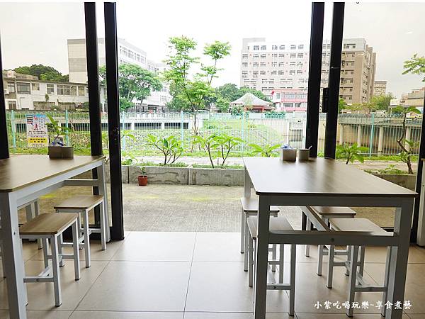 坐在店內透過落地門即可邊用餐邊欣賞戶外埤塘公園步道景色