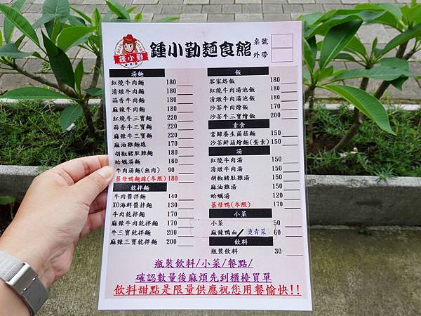 鍾小勤主賣(紅燒/清燉/蒜香)牛肉麵。