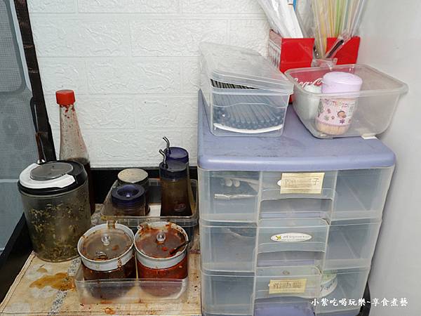 佐醬區有豆瓣醬、自製辣油、鳥醋、白醋等...調味料