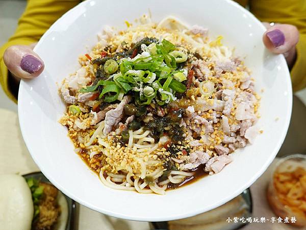 加花生碎多了堅果香有畫龍點睛作用更很耐吃。脆口豆芽菜與蔥花香讓這碗乾拌麵增添許多層次感與香氣;是一碗蠻有特色乾拌麵