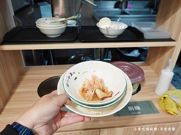 別忘了『餐具』必須自己拿到櫃台左手邊的『餐具回收區』先將剩食或碗內湯汁(倒)廚餘桶內、面紙垃圾(倒)垃圾桶裡;再將空碗盤放置(餐具回收)架上再離店