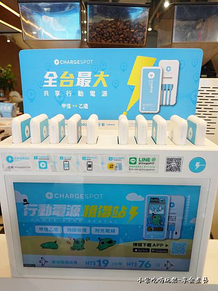成真咖啡桃園中正店 也是共享行動電源『租借處』可以甲地租借、乙地歸還