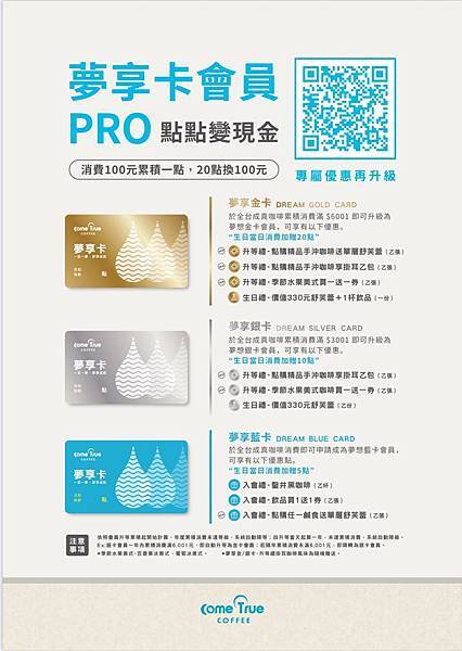 當年度(全台成真咖啡)累積消費滿3001元即可升級『夢享銀卡會員』