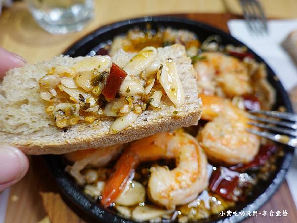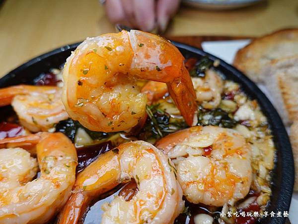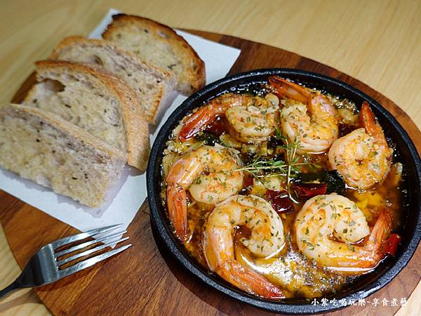 開胃分饗小點 西班牙蒜辣蝦 $380元 (附~手工香草麵包)