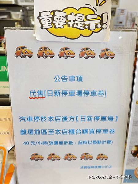 來成真咖啡用餐、離場前記得先在『成真櫃檯』繳付停車費優惠價40元/hr