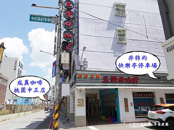 離這裡約100公尺距離中正路876巷(三灣仔冰室)後方有付費『快樂亭停車場中正站』可停放