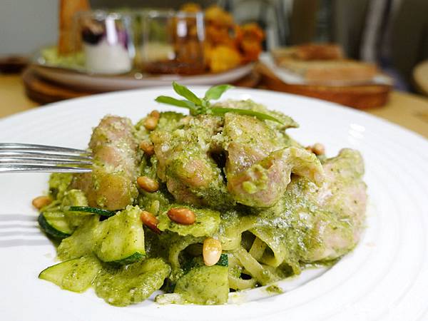 義大利麵裡頭有櫛瓜片、玉米筍片!