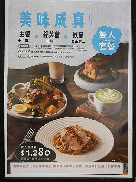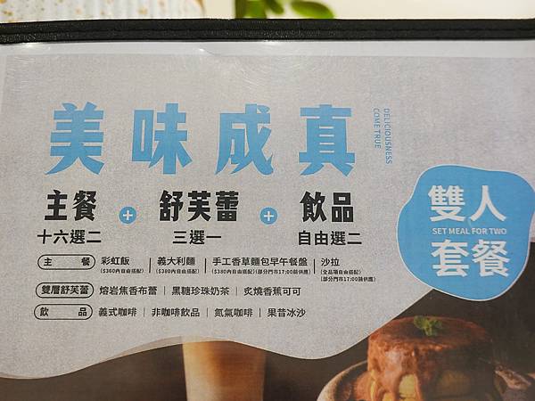 雙人套餐 16道主餐(任選2)+下圖(3款)雙層舒芙蕾(擇1)+下圖飲料(任選2杯)
